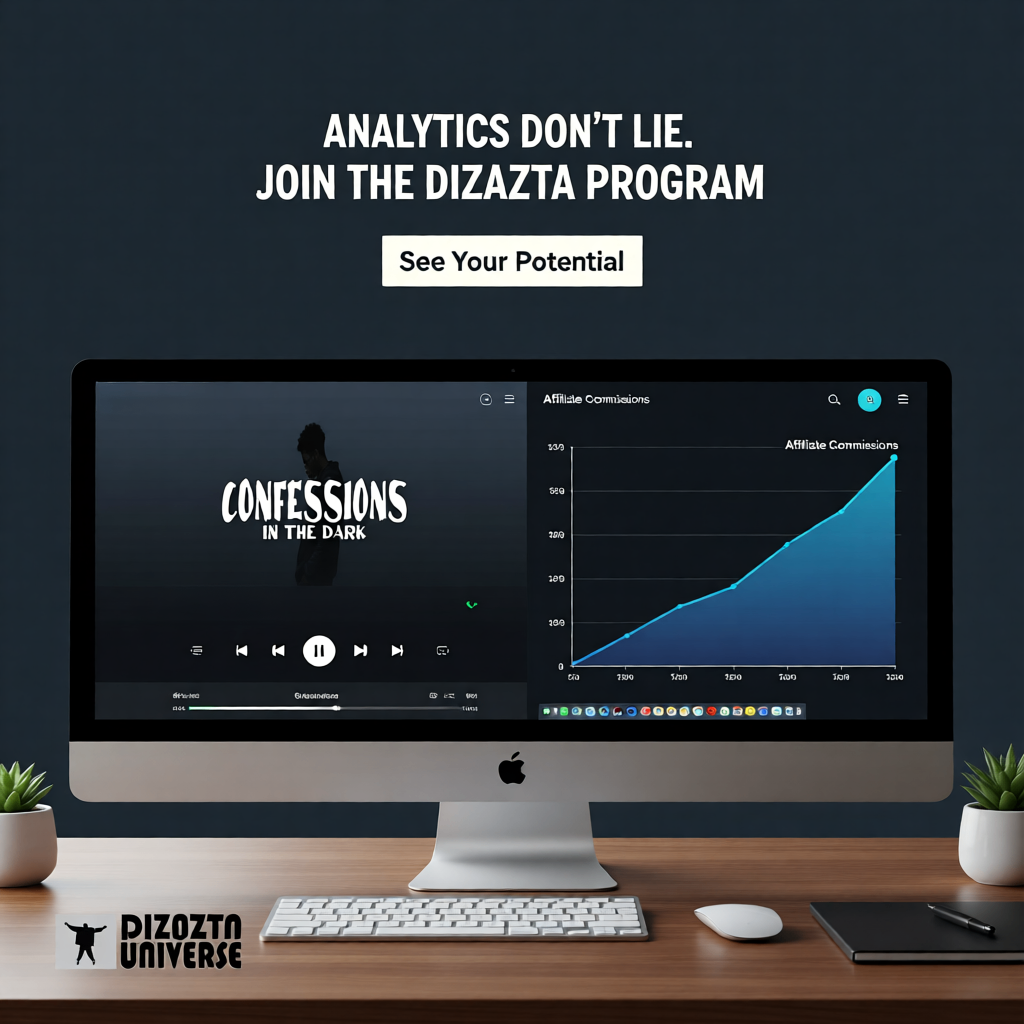 As a Dizazta Affiliate, you’re encouraged to use the promotional tools available on this page to help share and promote the music. Simply save the images, banners, and assets provided and use them across your social media, websites, or direct promotions to support The Dizazta Affiliate Program.